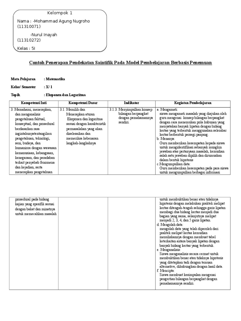Contoh Penerapan Pendekatan Saintifik Pada Model