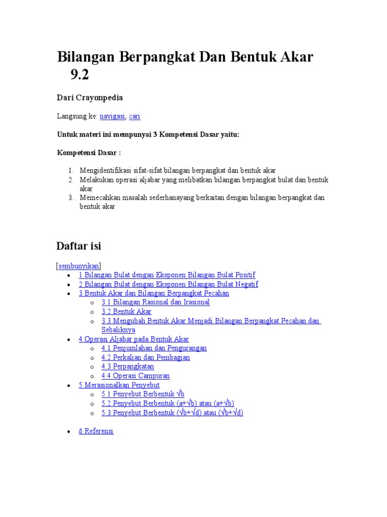 Bilangan Berpangkat Dan Bentuk Akar 9 Doc
