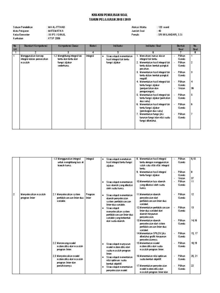 Kisi Kisi Soal Matematika Xii Ips 18 19