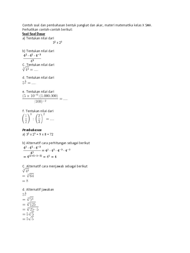 Latihan Bilangan Berpangkat Dan Bentuk Akar Matematika