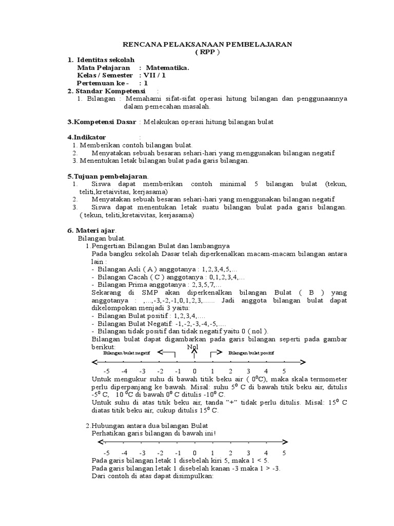 Rpp Lks Bilangan Bulat Doc Document