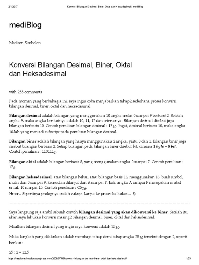 Konversi Bilangan Desimal Biner Oktal Dan Hexadesimal Pdf