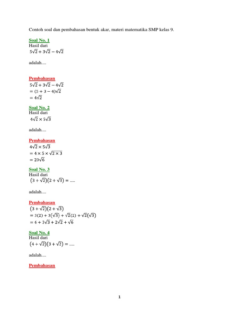 Kumpulan Soal Bentuk Pangkat Dan Akar
